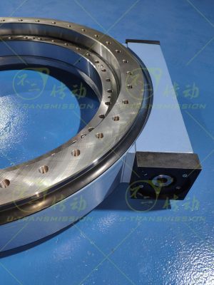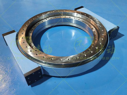 WE-III-O-32精密重載銅渦輪雙蝸桿全防護蝸輪蝸桿式回轉(zhuǎn)驅(qū)動,客戶使用在精密轉(zhuǎn)臺領(lǐng)域,要求精度高,轉(zhuǎn)速快,穩(wěn)定可靠。根據(jù)客戶要求,不二傳動為客戶設(shè)計了這一款重載銅渦輪雙蝸桿全防護蝸輪蝸桿式回轉(zhuǎn)驅(qū)動,回轉(zhuǎn)驅(qū)動采用精密回轉(zhuǎn)支承鑲嵌鋁青銅ZCuAl9Fe4Ni4Mn2的方式,既保證回轉(zhuǎn)驅(qū)動的承載能力,又保證了回轉(zhuǎn)驅(qū)動轉(zhuǎn)速快,穩(wěn)定可靠。