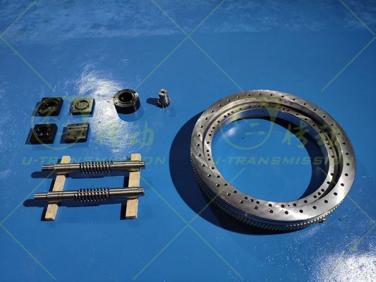 安裝、調(diào)試、檢測、加注潤滑脂、進行靈活性實驗、包裝發(fā)貨,一氣呵成,一個滿足客戶要求的產(chǎn)品在不二傳動團隊的努力下順利發(fā)貨。值得一提的是我們在做靈活性實驗時發(fā)現(xiàn),雙蝸桿精密型的回轉(zhuǎn)驅(qū)動非常容易實現(xiàn)兩根蝸桿的同步,這意味著客戶完全可以使用兩個液壓馬達或者兩個伺服電機分別驅(qū)動兩根蝸桿,可以輕松實現(xiàn)雙蝸桿回轉(zhuǎn)驅(qū)動靈活旋轉(zhuǎn)。