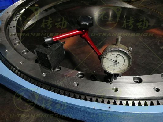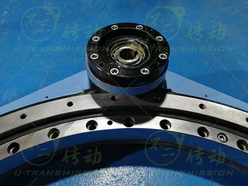 S-II-O-0941-MC外齒同向法蘭精密齒輪式回轉(zhuǎn)驅(qū)動可以把減速機和電機安裝到上面,但是密封是一個問題,由于傳動齒輪的輸入端設計到了上面,回轉(zhuǎn)支承的外圈上不能安裝NBR橡膠密封,只能想辦法把密封安裝到殼體上。不二傳動為客戶設計了鋼板密封,密封安裝在殼體上,堅固安全,美觀實用,確保直齒驅(qū)動的可靠性。精密型齒輪式回轉(zhuǎn)驅(qū)動穩(wěn)定性非常重要,殼體采用加厚的球墨鑄鐵鑄件經(jīng)加工中心加工而成,精度和穩(wěn)定性得到保證,回轉(zhuǎn)支承依舊采用42CrMo調(diào)制、負游隙、磨齒,支撐軸承采用P5級精密軸承。不二傳動設計團隊豐富的經(jīng)驗確保了部件之間相互配合的合理性,只有合理的配合才能做成精密的產(chǎn)品。