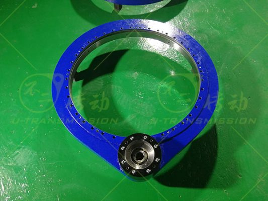 S-II-0841-MC精密齒輪式回轉驅動客戶用在自動化領域,產品豎直安裝使用,有較大的傾覆力,回轉驅動用來帶動工件旋轉不同的角度,角度誤差要求非常小,需要保證在0.01°以內。根據客戶的使用要求,給客戶推薦了S-II-0841-MC直齒驅動,II系列驅動的回轉支承高度更高,載荷和傾覆力矩比較大,豎直安裝使用更穩定,齒采用小模數設計,能更好的減小角度誤差,增加減速比,客戶可以選擇小減速比的減速機配合使用,綜合成本更低,總傳動誤差更小。在設計過程中把影響傳動精度的因素降到最低,優化設計,降低生產難度,提高直齒驅動的可靠性。