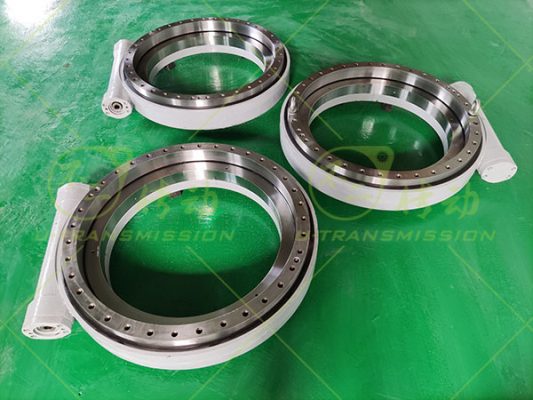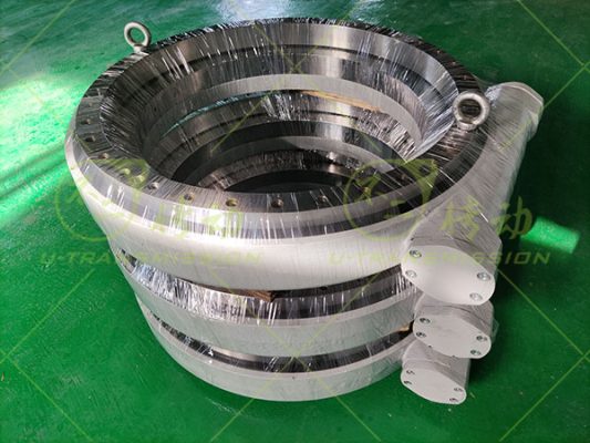 WEA35精密蝸輪蝸桿回轉驅動客戶用在重型設備上,要求回轉精度≤0.05°,客戶需要自鎖,減速比大,高輸出扭矩,所以給客戶設計了WEA35精密蝸輪蝸桿驅動,渦輪采用42CrMo調制,齒淬火,蝸桿采用鋼蝸桿,齒淬火,這樣設計能提高單齒承載,最大限度提高驅動的輸出扭矩。客戶要求反向自鎖,只能由蝸桿帶動蝸輪,而不能由蝸輪帶動蝸桿,這樣在設備關機或者無動力的情況下仍能保證設備靜止不動,非常安全可靠。蝸桿傳動相當于螺旋傳動,多齒同時嚙合,傳動平穩、噪音很小。