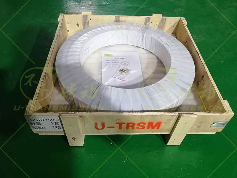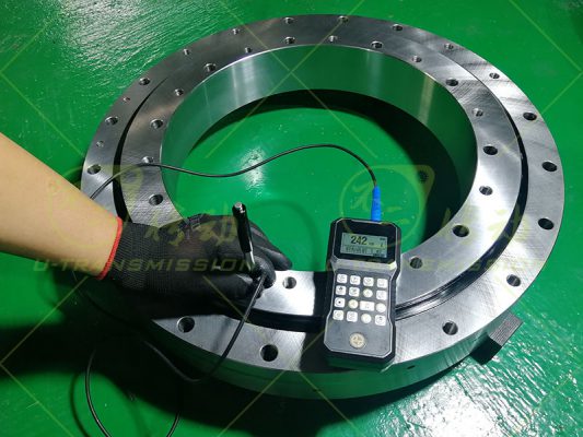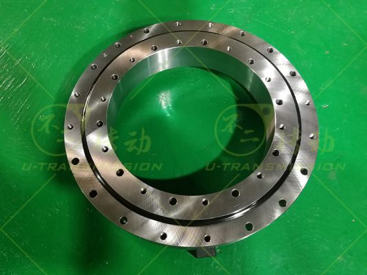020.25.560 精密雙排球回轉支承客戶用在破碎設備上,轉速60轉/分鐘,由皮帶輪直接帶動旋轉,雙排球回轉支承具有轉速高,載荷大,抗傾覆能力好,運轉平穩等特點,加工的難點是保證兩排溝道位置一致還需要保證兩排溝道平行,只有這樣兩排鋼球才能同時受力,才是真正意義上的雙排球,加工不好的話只有一排鋼球受力,就變成單排球回轉支承了,失去了使用雙排球回轉支承的意義。