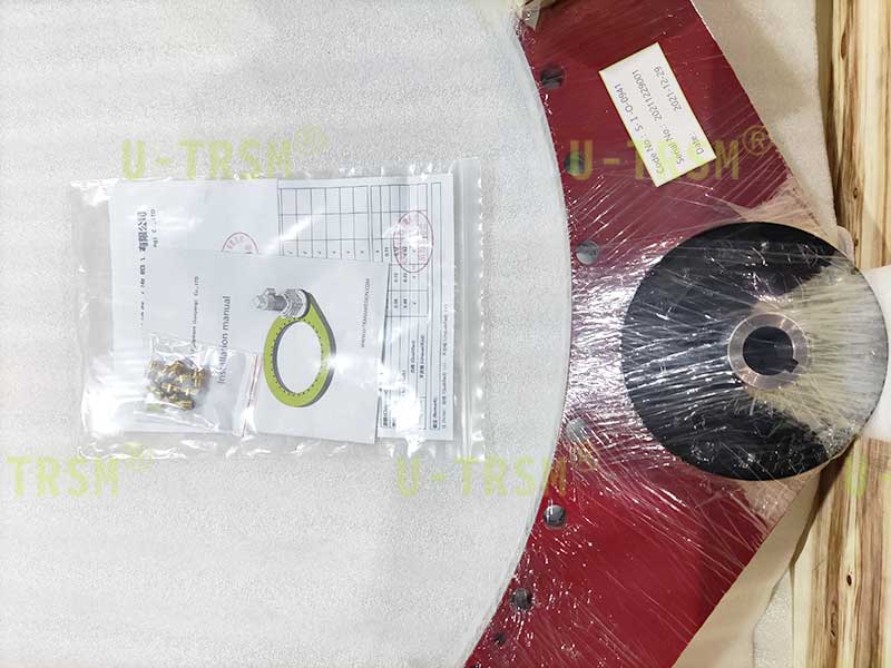 客戶的減速機連接形式非常特殊,止口是凹陷的,減速機輸出軸被保護在連接法蘭內。我們根據客戶的減速機設計了凸臺式的止口,設計了加高齒輪,以便客戶的減速機可以直接跟驅動的輸入端連接。這樣的設計給包裝運輸造成了麻煩,我們專門制作了墊塊,把驅動突出的齒輪墊起來,確保運輸過程中驅動不損壞。針對特殊設計的驅動,不二傳動始終堅持為客戶著想,盡最大努力做到周到細致,讓客戶滿意。