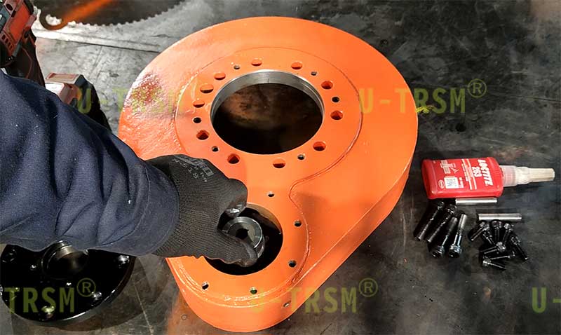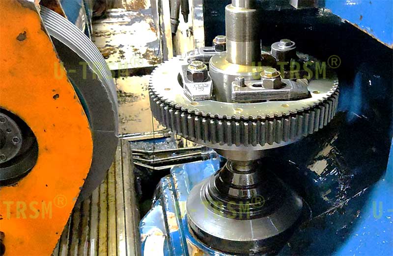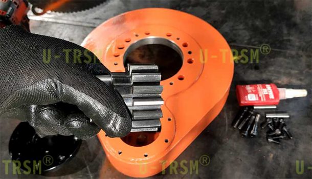 精密型回轉驅動我們一般采用0游隙的回轉支承,這樣可以保證回轉驅動工作的時候外圈不會因為受力產生軸向和徑向的移動,避免了因為回轉支承游隙造成的精度損失。為了保證齒間隙≤0.1mm,必須在齒淬火后對齒圈和齒輪進行磨齒加工,磨齒可以保證齒輪和齒圈有非常好的齒跳,這是保證齒間隙的前提條件。