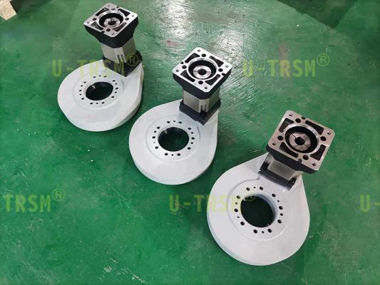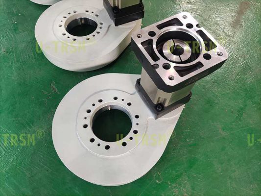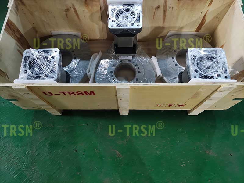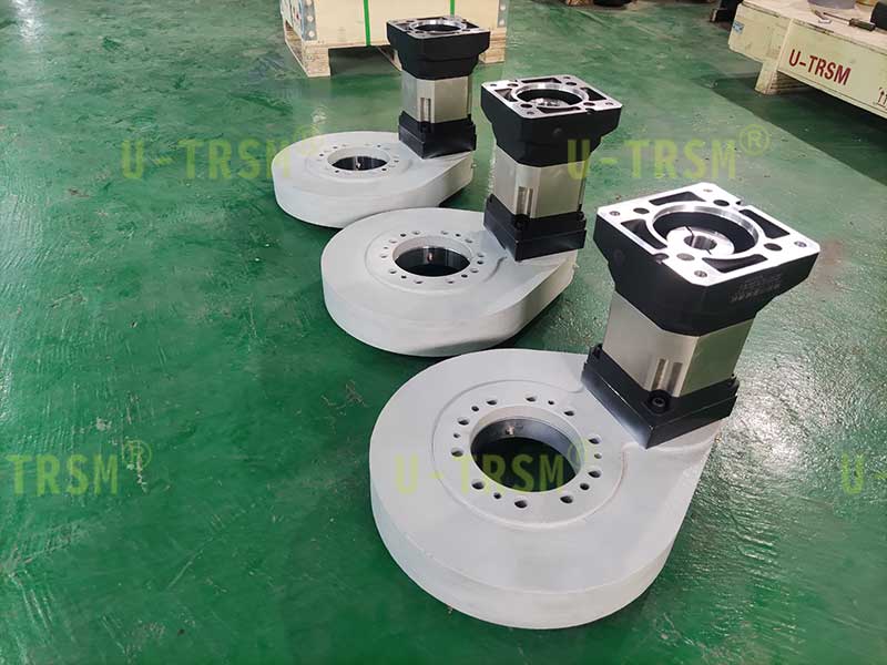 客戶需要我們配套合適的減速機,根據使用工況,我們選擇了輸出扭矩和減速比都適合的行星減速機,并且對減速機和回轉驅動做了適配設計。發貨前我們為客戶安裝好行星減速機,客戶收到貨,直接連接伺服電機回轉單元就可以旋轉使用了,非常的方便。