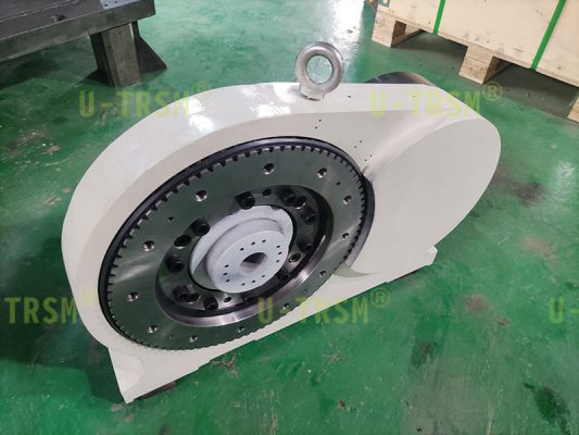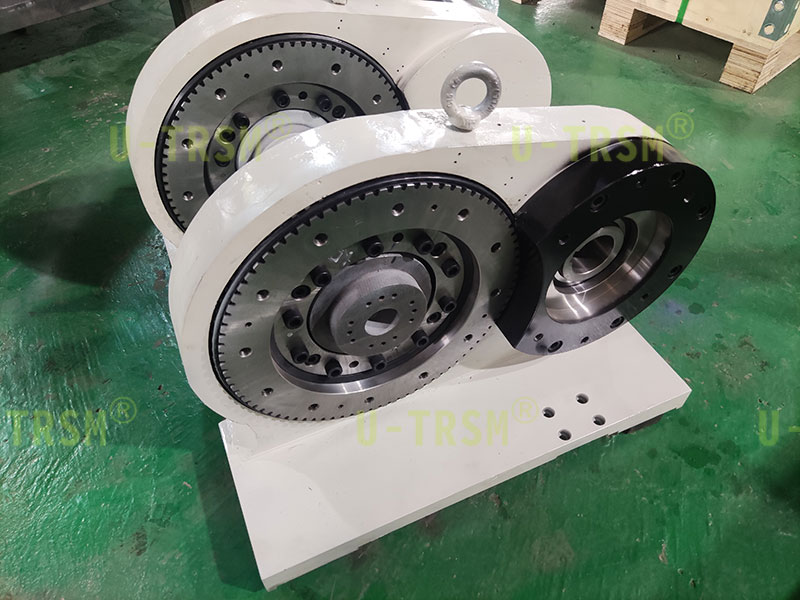 根據客戶的這些要求,不二傳動的工程師設計了這一款帶底座豎直安裝使用的齒輪式回轉驅動,滿足了客戶的使用要求。兩個齒輪式回轉驅動電機安裝方向相反,一個同向安裝,一個反向安裝,同向安裝的回轉驅動密封的設計是難點,在不增加成本的前提下,不二傳動為客戶設計了特殊的密封方式,用最低的成本巧妙解決了密封問題。