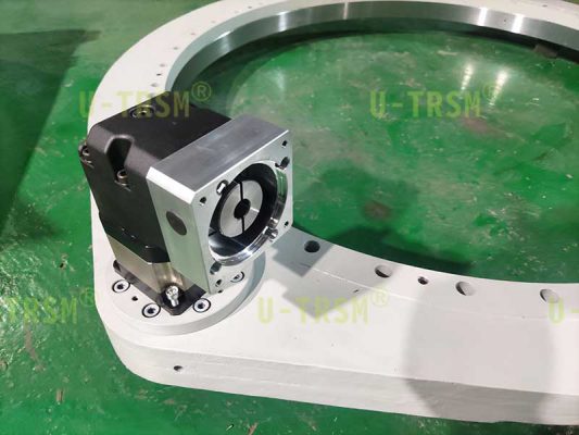 其實在設備設計中有很多類似的需求,被轉工件重量很輕,但是尺寸比較大,客戶還要從回轉驅動的內徑穿過尺寸較大的部件。這就要求齒輪式回轉驅動做成輕薄型的,首先要考慮回轉驅動的強度,不能設計滿足不了客戶載荷要求的過于輕薄的回轉驅動。