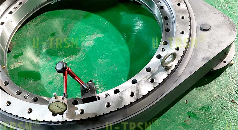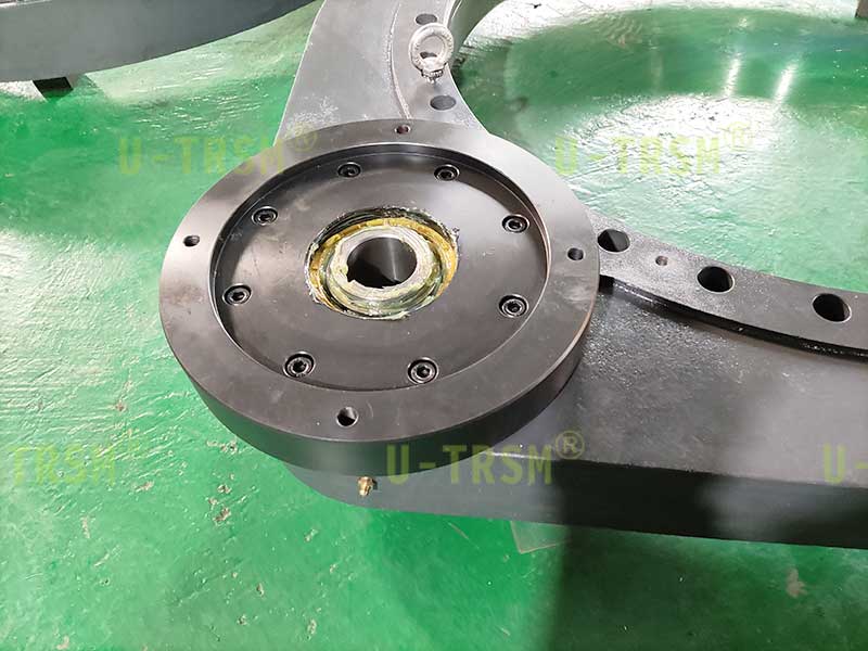S-III-O-0955 齒輪式回轉驅動應用在重型設備上,用來帶動工件低速旋轉,使工件到達指定的位置。設備要求回轉驅動載重大,傾覆力矩大,輸出扭矩大。