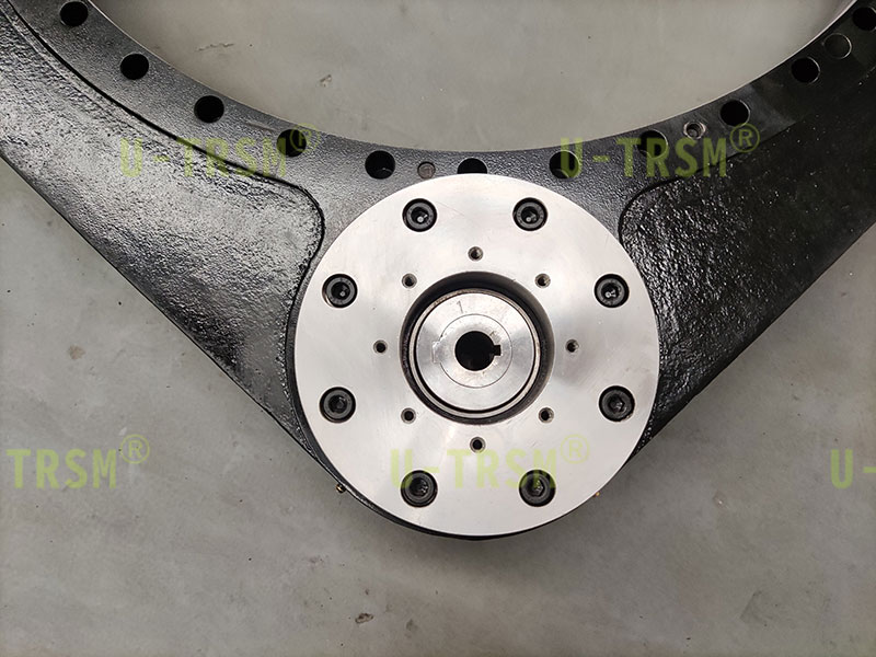 根據客戶選擇減速機輸出端尺寸設計了回轉驅動的連接法蘭,從新設計了傳動齒輪的配合尺寸,修改后客戶的減速機可以和回轉驅動直接連接,方便客戶使用。