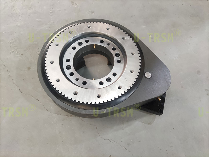 這種安裝普通減速電機的回轉驅動回轉總成的成本比較低,應用非常廣泛,可以同時滿足客戶承載,旋轉,降低電機轉速的需求。