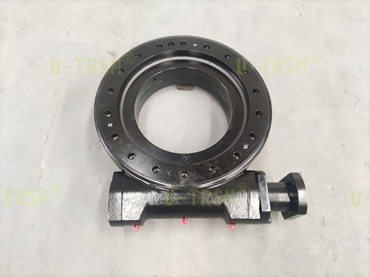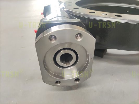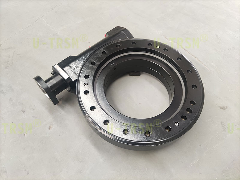 SE14蝸輪蝸桿回轉驅動應用在自動化設備上,蝸輪蝸桿回轉驅動具有減速比大,輸出扭矩大,自鎖等特點,特別適合應用在低轉速場合。如果使用現場有液壓站,蝸輪蝸桿回轉驅動搭配液壓馬達使用簡直是太合適了。
