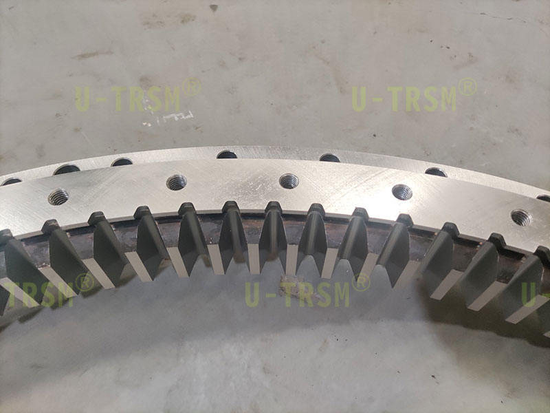 該回轉(zhuǎn)驅(qū)動(dòng)采用零游隙設(shè)計(jì),齒淬火后進(jìn)行磨齒加工,內(nèi)齒回轉(zhuǎn)驅(qū)動(dòng)成品可以達(dá)到跳動(dòng)≤0.03mm,整圈最大齒間隙≤0.15mm,回轉(zhuǎn)驅(qū)動(dòng)空載啟動(dòng)力矩120N.M,旋轉(zhuǎn)靈活無卡滯現(xiàn)象,完全滿足使用要求。