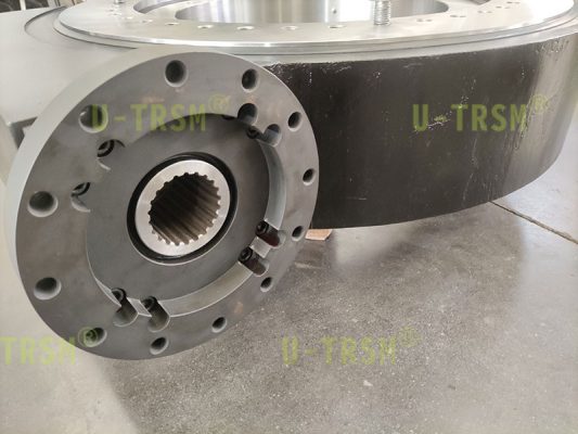 不二傳動工程師應對此種工況,為客戶設計選型WZ-Ⅲ-O-2-0620雙排球大模數重載型蝸輪蝸桿回轉驅動,并對齒面進行淬火處理,提高了齒的性能以達到客戶的使用要求。不二傳動設計的WZ-Ⅲ重載型蝸輪蝸桿式回轉驅動作為轉向裝置,能實現很高的輸出扭矩,具備承受很大傾覆力矩的能力,并具有非常緊湊的設計結構,全防護的設計能達到IP65的防護等級。