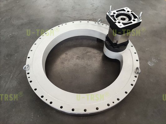 了解了客戶的工況后,不二傳動的工程師設計了外齒的回轉驅動用來轉動外部轉臺,又巧妙的利用外齒回轉驅動內部的空間設計了內齒回轉驅動,用來轉動內部轉臺,這樣既節約了安裝空間,又滿足了客戶的需求,加工制造難度也有了大幅降低。不二傳動在回轉類產品的設計生產方面擁有豐富的經驗和活躍的思維,期待您的垂詢。