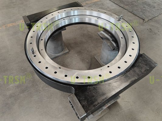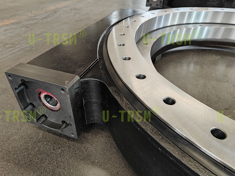 此款回轉驅動應用于高原低溫環境中,載荷大,扭矩大,使用環境在-40-50°C,并且要求高精度。回轉驅動中的回轉支承需進行全磨加工,保證尺寸的精準,表面無任何劃傷,在零部件加工及搬運過程中做保護處理。此款回轉驅動輸出扭矩可達230kNm,保持力矩可達1400kNm,載荷可達350t,回程間隙≤0.05°,保證回轉驅動的整體氣密性,采用加裝高質量硅橡膠密封,不二傳動設計工程師根據客戶的使用要求,研發了此款回轉驅動。