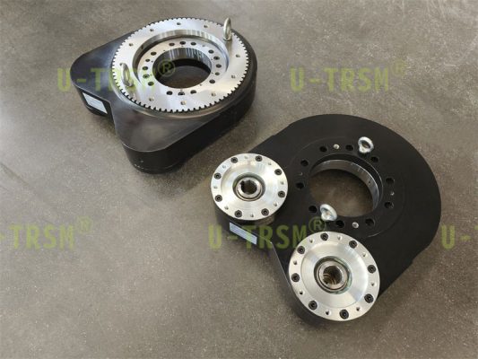 不二傳動設計工程師根據客戶需求,研發了此款驅動:外殼及適配法蘭采用鋁合金設計,回轉支承做薄,重量由標準型號的50kg,下降到37kg以內,并且保證載荷及輸出扭矩等性能不變。