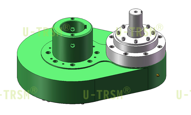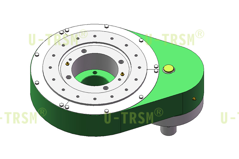 不二傳動(dòng)設(shè)計(jì)工程師根據(jù)客戶(hù)需求研發(fā)了此款驅(qū)動(dòng),雙排球的設(shè)計(jì)使得回轉(zhuǎn)支承能在有限空間內(nèi)載荷最大化,斜齒的設(shè)計(jì)使得輸出扭矩得到進(jìn)一步的加強(qiáng),輸入齒輪端采用3個(gè)通用軸承進(jìn)行支承,使得傳動(dòng)在高速旋轉(zhuǎn)時(shí)更加的平穩(wěn)。
