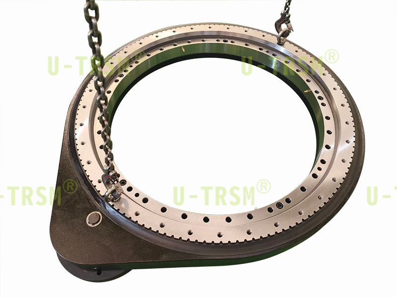 此款回轉減速機應用于自動化攪拌設備上,客戶要求使用時,同一個方向旋轉,勻速,轉速較高,支承攪拌桶要求不能有晃動,啟動與停止都是漸入漸出比較緩慢,不二傳動設計工程師根據客戶提供被攪拌工件的載荷,選擇了重載系列0655回轉減速機,此款回轉減速機最高轉速61r/min,完全滿足客戶使用,采用負游隙設計,使得旋轉時極大的減小晃動,并且磨齒設計在旋轉時更加的平穩,端面跳動≤0.05,高精度的設計。